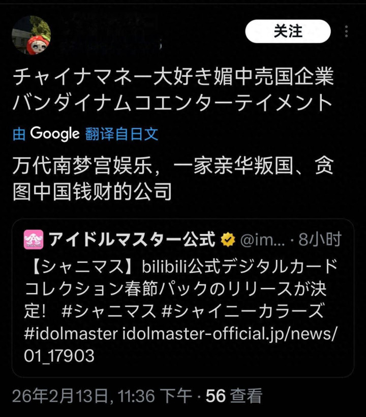 如果你常刷日推,最近大概率会刷到这么一幕,一些日本网友突然开始集火万代南梦宫娱乐,直接开喷“亲华卖国”“只知道赚中国人的钱”。